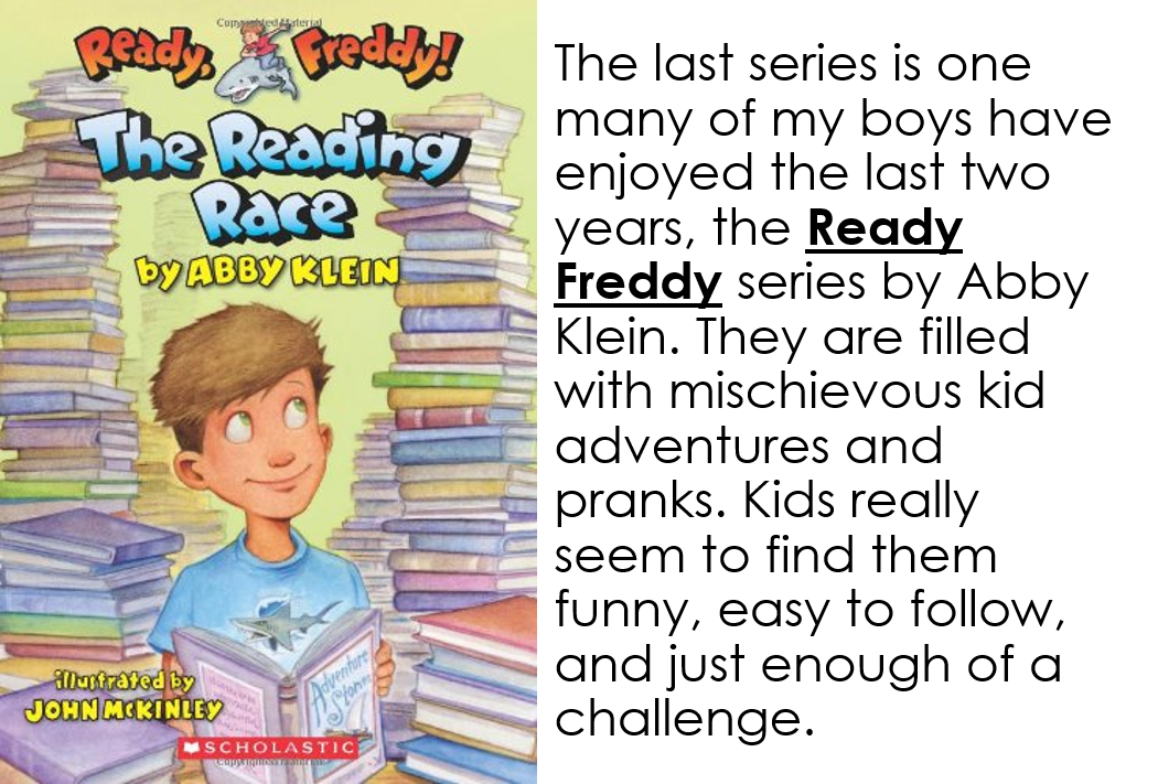Wonderful resource! My two sons (2nd and 3rd grades) love many of the books you suggested and I found some new ones for them! Thanks so much! ๐