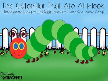 There are so many wonderful books to choose from with this unit. Definitely check out the book titles to the left for great choices. One not included (due to copyright) is The Very Hungry Caterpillar. I just love Eric Carle’s books, so the top of my list is The Very Hungry Caterpillar. In fact, it was one of the first units I put together for my store, but I have since restructured it to be more of a thematic unit on butterflies. You can take a look at that later in this post if you wish.
