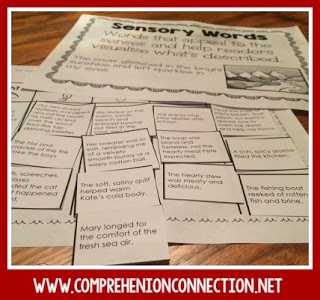 For students to be able to visualize, they have to have familiarity of the language that authors use. If we work on sensory words and imagery with poetry, this may be easier than a long book. Many teachers brainstorm descriptive words according to the senses when working on descriptive paragraphs. This same idea can be used for materials we read too. This sensory sort can get you started. As kids sort, have them turn and talk about the images these phrases help them create. [THIS FREEBIE] is available in my store, so hop on over and download your copy.