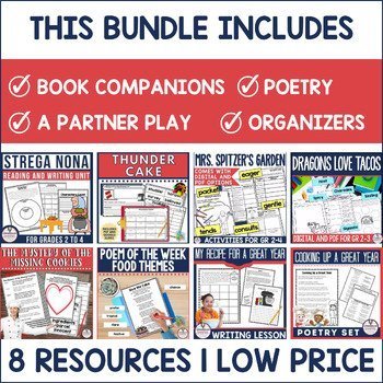 Start your year with this Cooking Up a Great Year themed unit. Your students will devour the fun poems, book companions, plays, and writing activities! This bundle is focused on bite sized nuggets your students will need to have a positive year. It includes a partner play, food themed poem of the week resources, graphic organizers for comprehension and the poetry set, Cooking Up a Great Year.